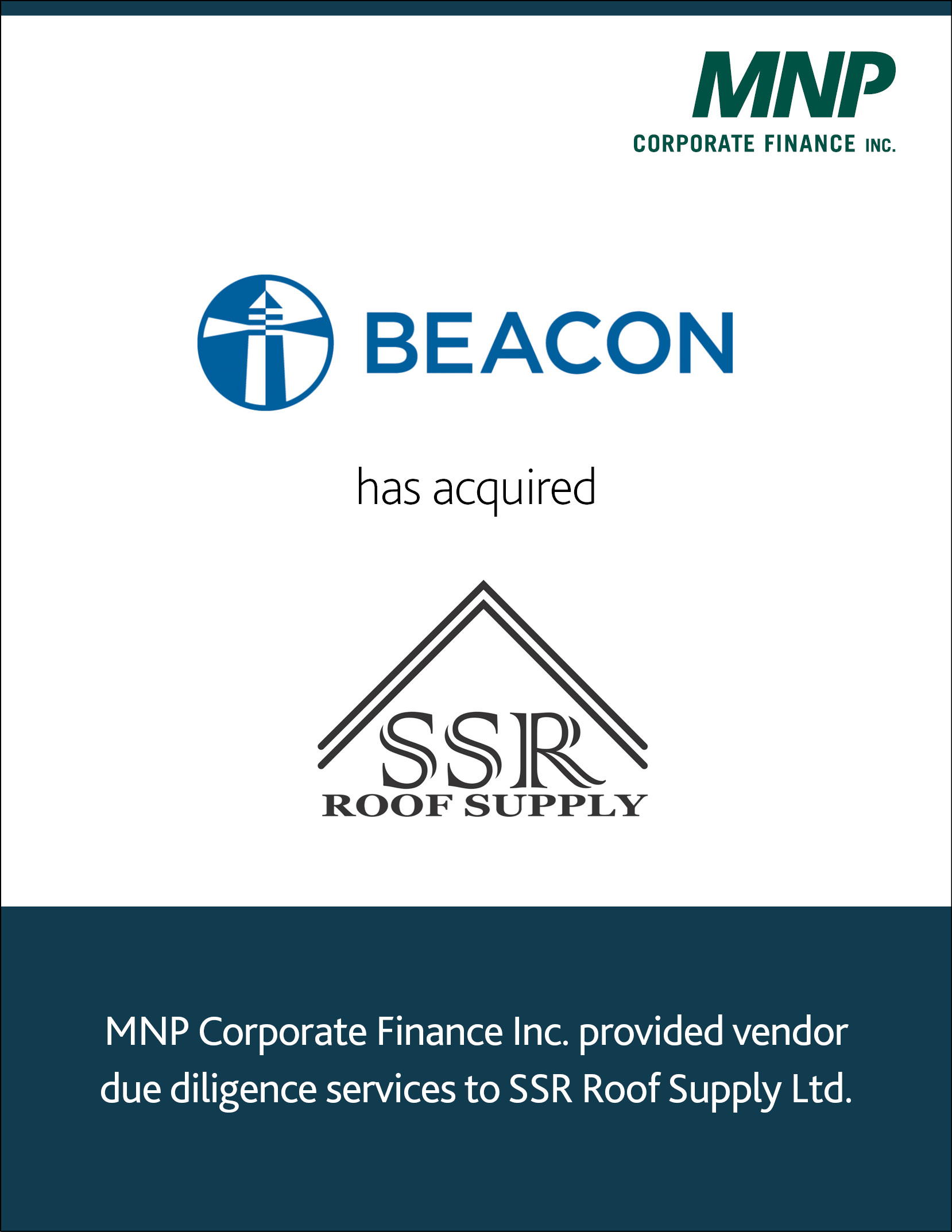 Beacon has acquired SSR Roof Supply Ltd. MNP Corporate Finance Inc. provided vendor due diligence services to SSR Roof Supply Ltd.